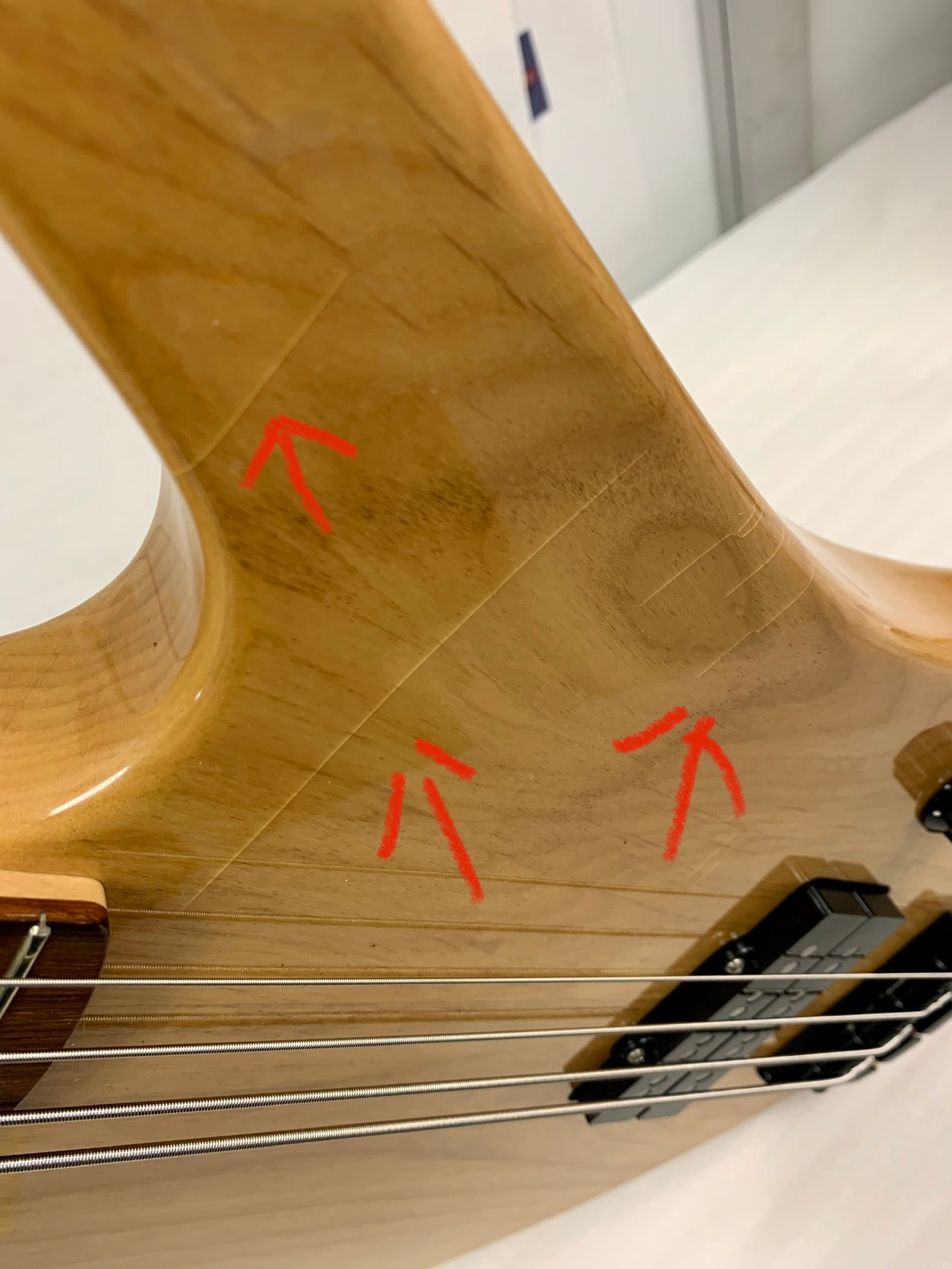 【 2019年製、Waltz初のオリジナルベースです。 完成から3年近く経ちますがネック、ボディー共にしっかりとしています。しかし、経年による塗装のひび割れが数箇所と打痕があります。ご了承の上、お買い求めください。 】